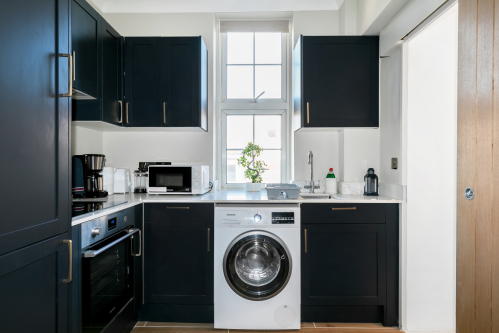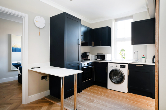 In elegant building, our 2 one bedroom flats come with flat screen TV, well-equipped kitchenette, washing machine and dryer, dish washer, hair dryer, iron and ironing board.