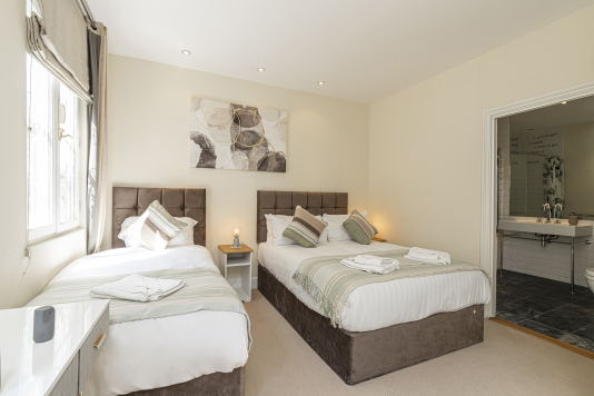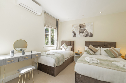 The house has three levels and is decorated in a comfortable modern style. All rooms feature an ensuite bathroom each. The flat is furbished with modern furniture.