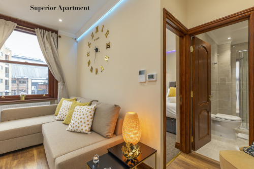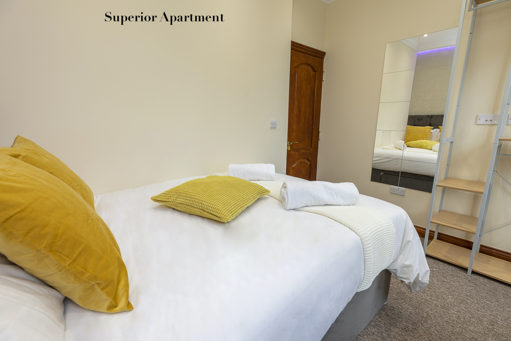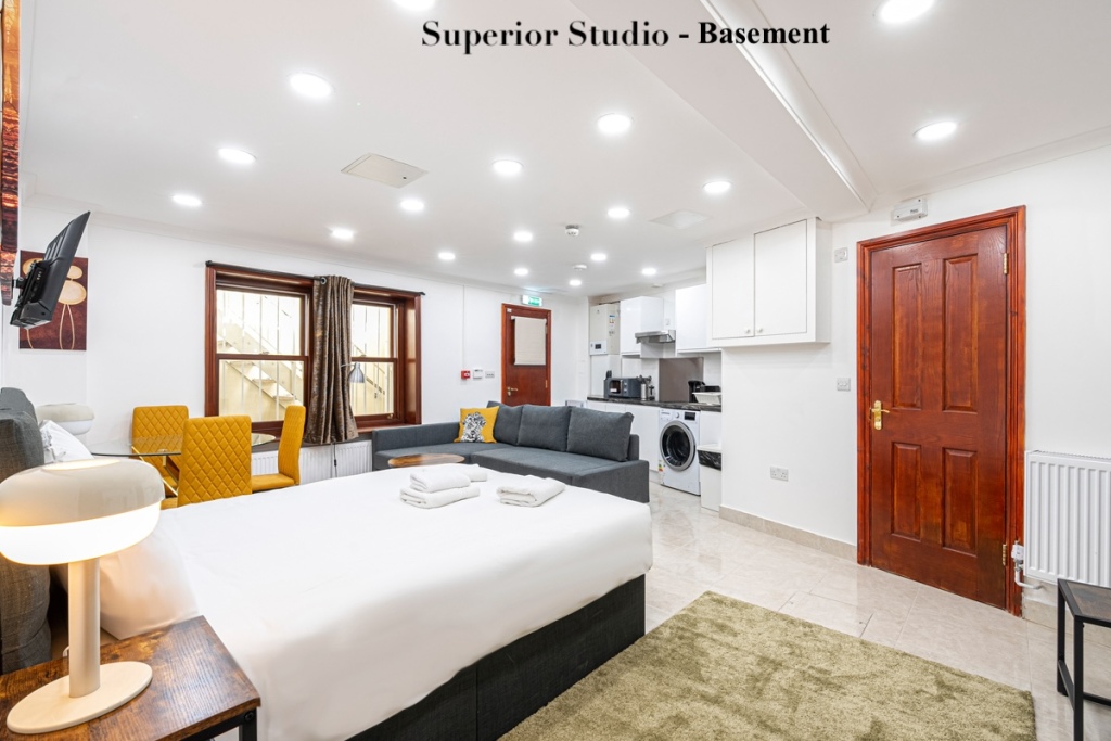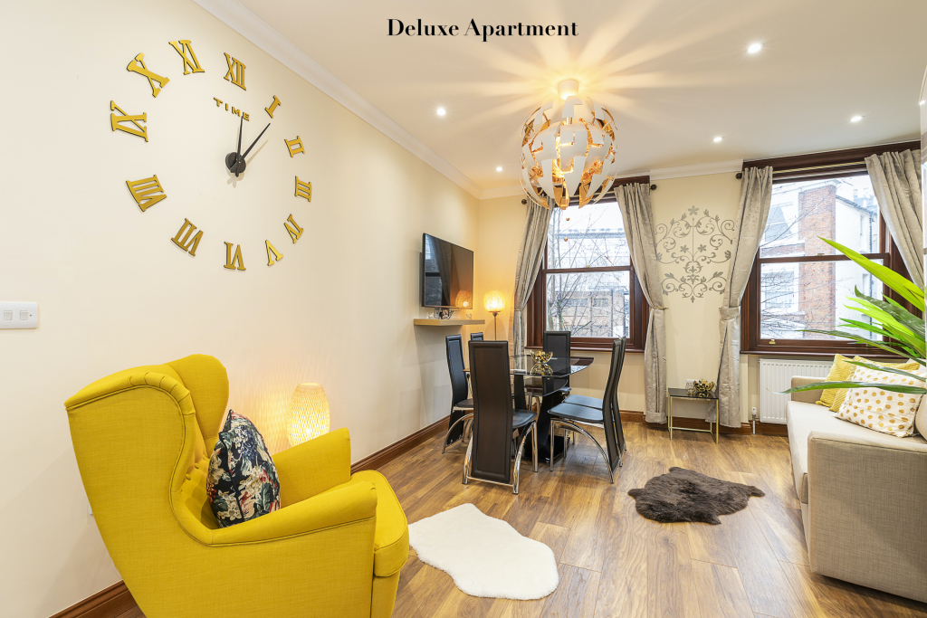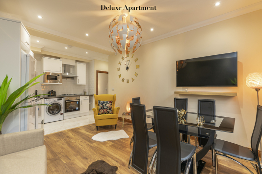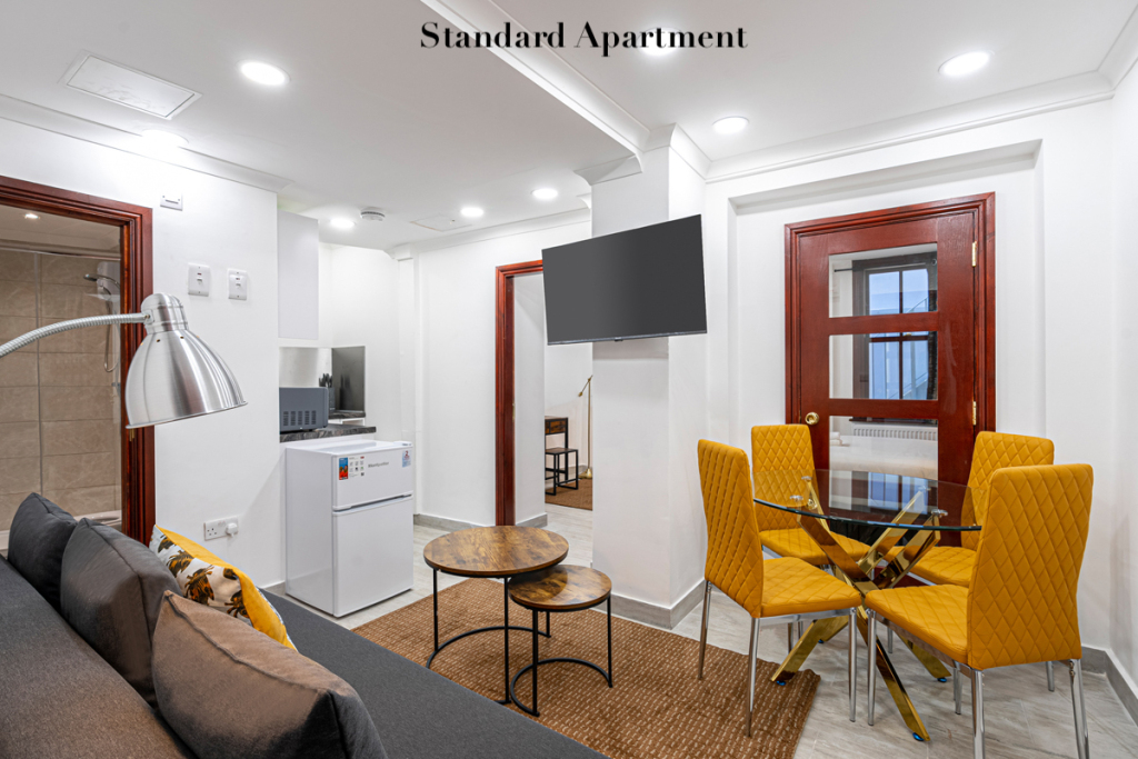The apartment have been Newly refurbished to very high standards and it benefits from lots of natural lights, Fully Equipped Kitchen, Full Ensuite Bathroom, Sofa bed in the Living room, Dinning table, LCD Smart TV, Free WiFi, Lift, Fresh Linen And towels, Toiletries.