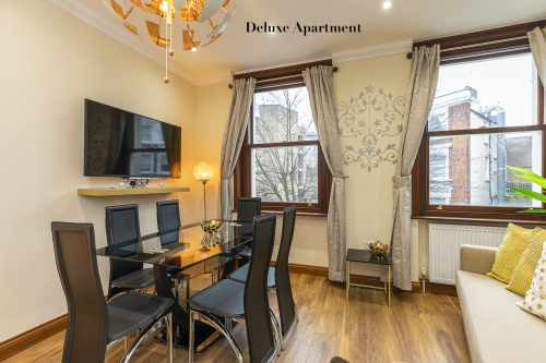 Stylish apartment right opposite Olympia Exhibition centre. The apartment have been Newly refurbished to very high standards and it benefits from lots of natural lights, Fully Equipped Kitchen, Full Ensuite Bathroom, Sofa bed in the Living room, Dinning table, LCD Smart Tv, Free Wifi, Lift, Fresh Linen And towels, Toiletries. Close to Museums and tourist attractions. Very Good transportation links.