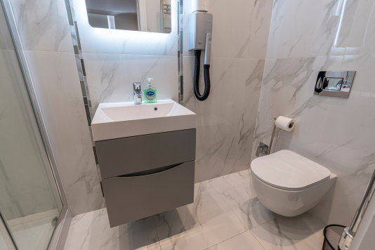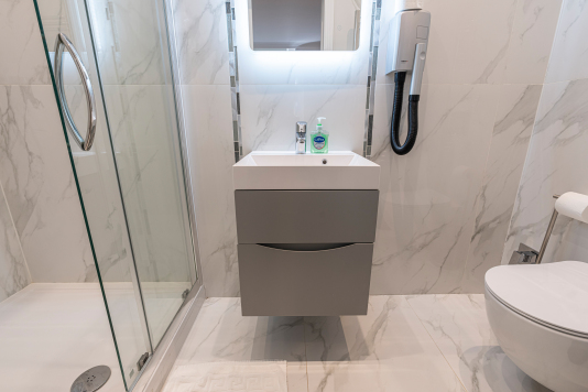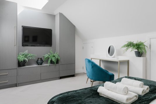 In a glamorous building, our beautifully designed Apartments feature studios, 1 Bed Apartments and a 1 Bed Stylish Penthouse located on the top floor. Each of our apartments come with a flat screen TV, well equipped kitchenette, washing machine and dryer, hair dryer, iron and ironing board and Portable Ac's in each flat.
