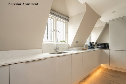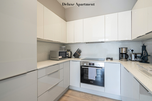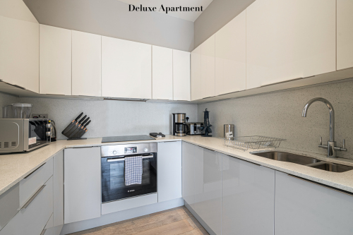 In an elegant building, each of our apartments comes with flat screen TV, well-equipped kitchenette, washing machine and dryer, dishwasher, hair dryer, iron and ironing board.